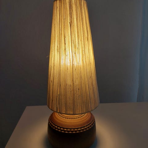 Jättefint skick, några små märken/nagg på det bruna strukturerade på foten. E27 sockel.