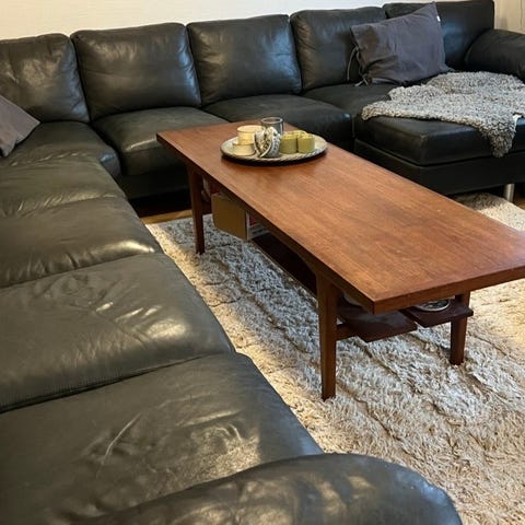 En riktigt skinnsoffa på 225 cm lång sparsamt använd säljer pga flytta.