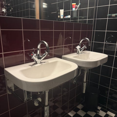 Badrumsspegel, okänt varumärke. Två små fläckar, inget som stör helheten. Oklart vad det är, dom fanns när vi flyttade in.