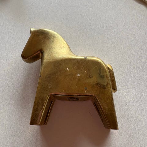 Vintage hästskulptur i massiv mässing – 50/60-tal – 1,6 kg
