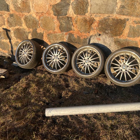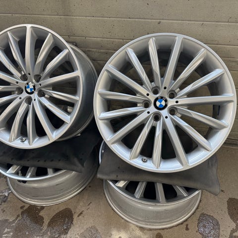 Fina BMW fälgar (LA wheel multi-spoke 619) 8Jx18 ET30 (BMW nummer 6861224) som passar både 5 serien (G30/31) och 7 serien (G11/G12). Bultmönster 5x112, centrumhål 66,5mm. Med TMPS ventiler. Sommardäck 18tum Hankook 245/45r18 100Y följer med ej monterade på fälgarna för totalpris 7000kr. Pris fälgar med däck monterade och balanserade totalt 8000kr när gummigubben haft tid för det jobbet.