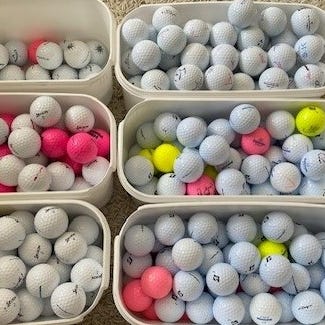 100st begagnade golfbollar blandade märken och modeller. Det är bollarna på bilderna som avses