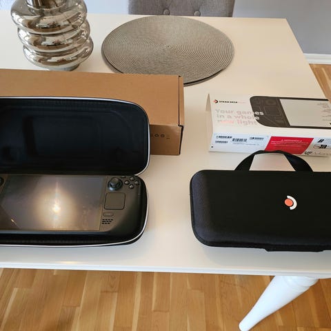 Säljer en Steam Deck OLED 512GB i mycket fint skick. Enheten har varit väl skyddad med skal(case), tumgrepp och skärmskydd. Tillbehör ingår så som Case och bärväska mm. Skyddsfilm är monterad på enheten.