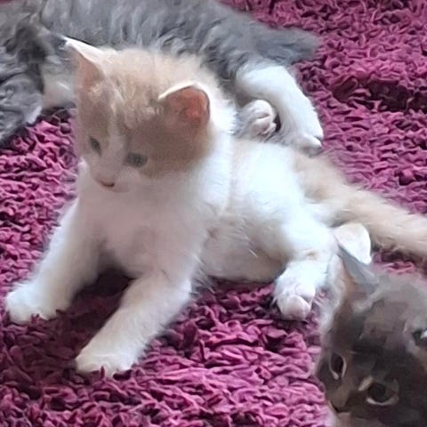 Simba är van vid andra katter och leker gärna med sällskap, så det är ett stort plus om det redan finns en katt i hemmet. Hon är nyfiken och tycker om att utforska, därför önskar vi att hon får komma till ett hem där hon har möjlighet att vara ute.