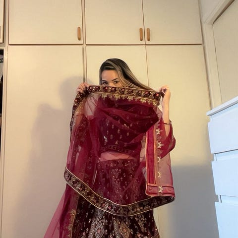Hindisk klänning – röd, oanvänd (4000 kr)