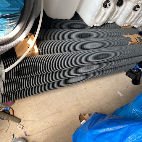 Radonfläkt med olika tillbehör som på bilden, böjar och rör ca 6meter 100mm rör