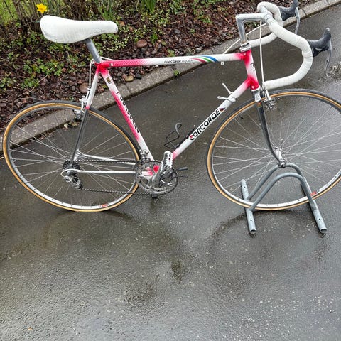 En Viner landsvägscykel från ca 70-talet. Klassisk med växlar på ram, fälgbroms, bakväxel Campagnolo, 6-delad krans. Behöver lite omvårdnad, finns tyvärr lite rost på ramen. Inga pedaler.
