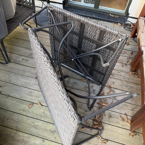 Grythyttan stålmöbler bord och 4 stolar i galvaniserat stål. Bord med rektangulär vit bordsskiva och metallunderrede. Stolar med sits och rygg i galler av galvaniserat stål samt rörstativ. Passar exempelvis uteplats, balkong eller trädgård. Neutral, ljus färgsättning som är enkel att kombinera med andra utemöbler och textilier.