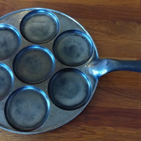 Plättlagg gjutjärn med 7 små runda formar.