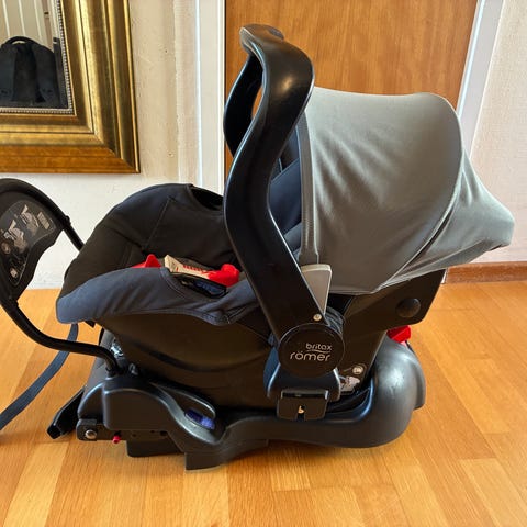Britax Römer babyskydd för barn upp till 13 kg. Babyskyddet är i svart och grå färg och monteras bakåtvänt i bilen. Det har bärhandtag, sufflett och vadderad insats för spädbarn. Passar för transport av små barn i bil enligt gällande säkerhetskrav för denna typ av babyskydd. Basen på bilderna ingår om säljaren anger det i annonsen.