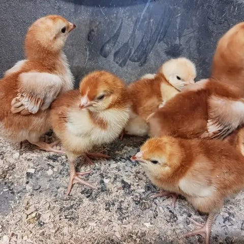 Har även hönskycklingar att köpa till om man vill dem ska präglas på höns.