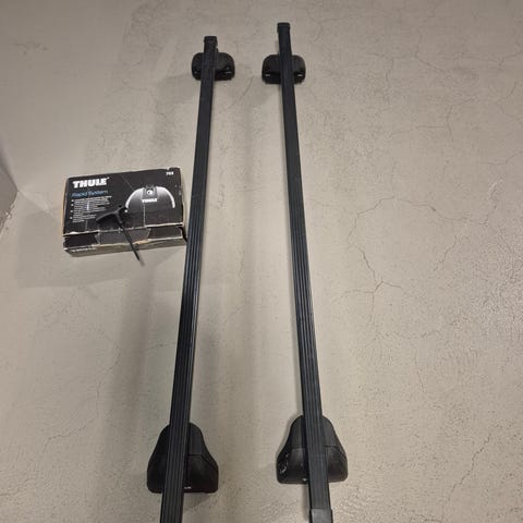 Takräcken i svart färg. Består av två längsgående räcken med fästen i ändarna. Passar för montering på bilens tak för transport av till exempel last, takbox eller cykelhållare. Volvo original för första generationens v60 - passar alltså inte v60 från 2018 och framåt.