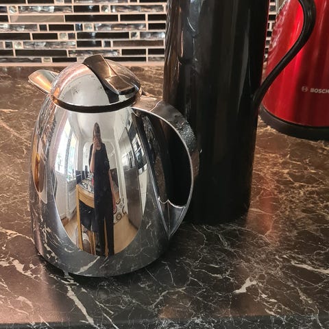 Termoskanna i rostfritt stål med pumpfunktion och bärhandtag. Lock och ovandel i mörk plast. Passar för servering av varma eller kalla drycker, exempelvis kaffe, te eller saft, vid hemmaanvändning eller sammankomster. Termosen är utformad för att hålla drycken varm eller kall under längre tid och rymmer en större mängd vätska än en vanlig termosmugg.