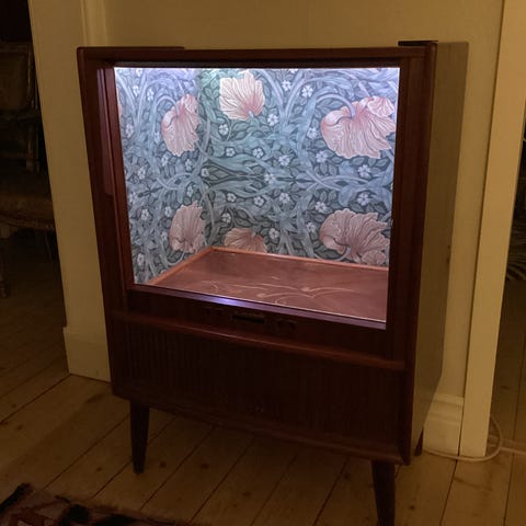 vintage barskåp utformat som en tunna. Dessa skåp är ofta tillverkade i teak eller ek och var populära under 1900-talets mitt, särskilt under 1950- och 1960-talet