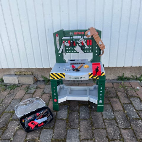 Det finns några tillbehör till snickarbänken som syns på bilden men tyvärr inga städtillbehör.