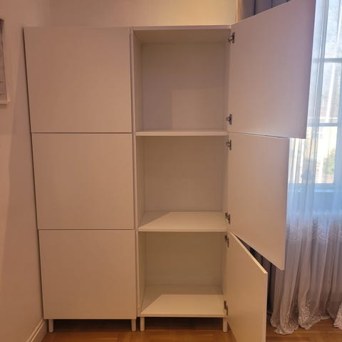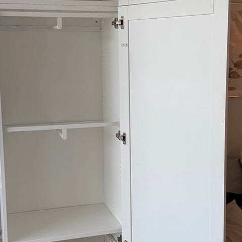 Stuva garderob med överskåp och 4 trådbackar. Bredd: 60 cm, djup: 50 cm, höjd: 139+ 64 cm.