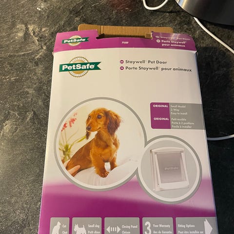 Carlson extra tall hundgrind med liten djurdörr i vit metall. Grind för att avgränsa utrymmen i hemmet för hund och andra smådjur. Den lilla dörren i nederkant gör det möjligt för mindre husdjur att passera medan större djur hålls kvar. Passar exempelvis i dörröppningar eller mellan rum där man vill skapa en tydlig avskärmning.
