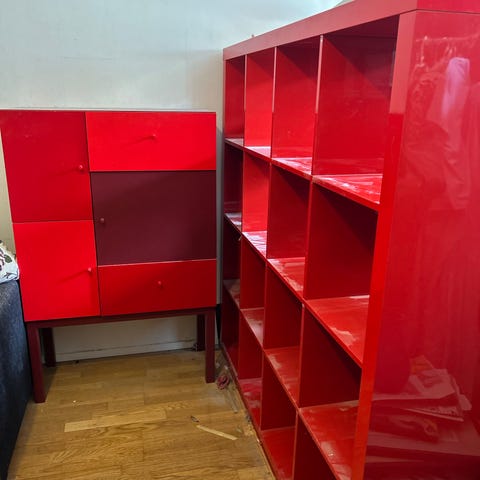 STUVA förvaring, 3 st sektioner bortskänkes. Kanske någon som vill ha att bygga upp en barnsäng med som vi gjorde, eller skrivbord till barn. De är synligt använda men under en skrivbordsskiva / säng stör detta inte.