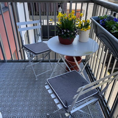 Bordet saknar glasbrickan, men det går bra att ställa en annan bricka på, som på första bilden.