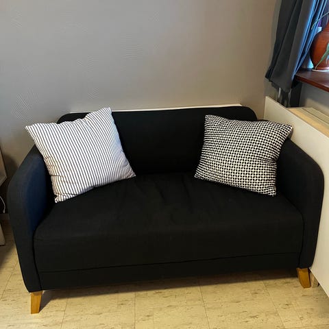 Liten soffa med möjlighet till förvaring.
