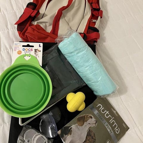 Hund set med reservation vatten skål och mindre reflexväst strl L i Åmål