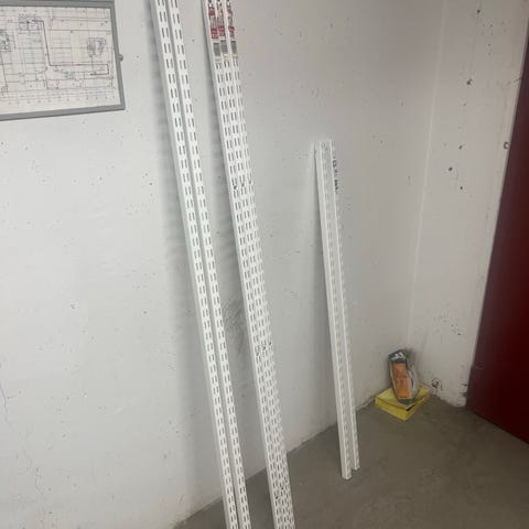 Slumpar bort 5 st trådhyllor, Elfa, plus 7 konsoler. Allt för 300 kr.