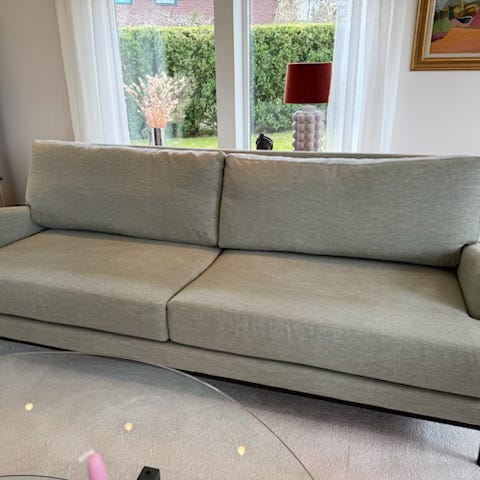 Mindre än ett år gammal soffa från Trendrum, 3-sits soffa HANNA säljs p g a flytt. Soffa är stilren i beige tyg.