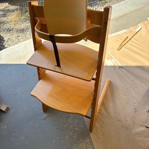 Säljer en klassisk Stokke Tripp Trapp barnstol i en fin målad grön nyans. Perfekt stol som växer med barnet och kan användas i många år.