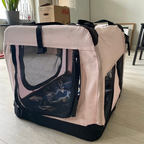 canvas bur vikbar för hund lila svart tyg 60x42x42