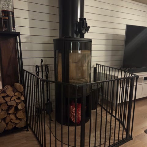 Kaminskydd/säkerhetsgrind från BabyDan, enligt bild. Motsvarar XL-paket med en extra sektion.