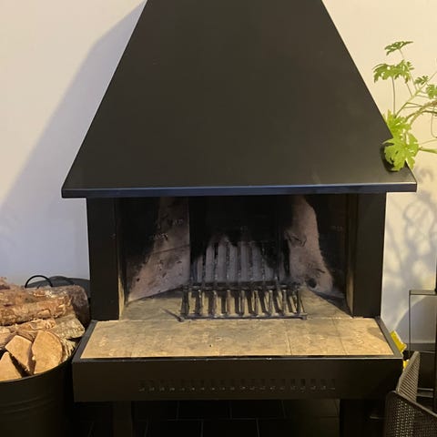 Består av flera sektioner som kan vinklas för att anpassas runt kamin eller eldstad. Grind med öppningsbar sektion för passage. Fästen för att montera i vägg.