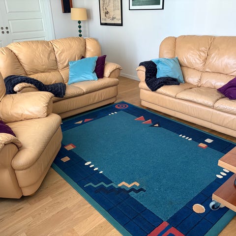 Tresitssoffan har en sprucken sits medan 2-sitssoffan är intakt.