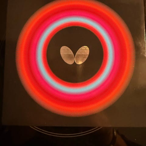Butterfly Viscaria Super ALC bordtennisracket med konkavt (FL) skaft. Beläggning med röd och svart gummi, enligt kvittot Butterfly Zyre 03 i olika tjocklekar. Racketen är tillverkad i Japan och levereras i originalförpackning med markering "World Leading Quality Blades" på skaftet.