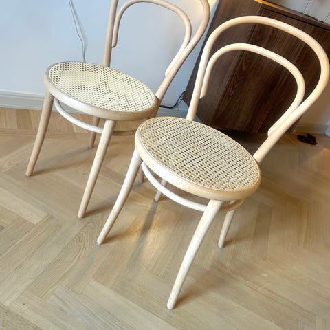 Säljer sex svarta thonetstolar med lädersits och nitar (Thonet no 30). Rejäla och stabila stolar som är i mycket gott skick. Kommer från djur och rökfritt hem.
