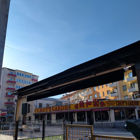 Säljer en motordriven markis med inbyggd led belysning.