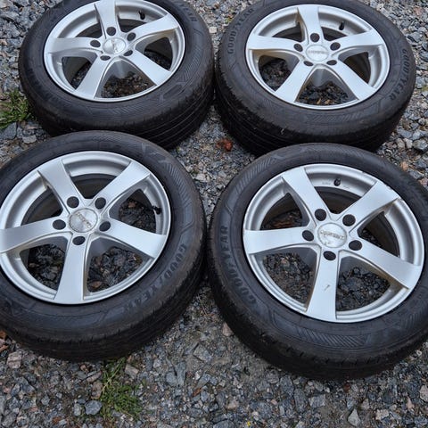 Michelin energi 205/60 R 16. Ca 4 mm. Ett mindre märke på 1 av fälgarna, ett lite större på 1 av fälgarna. Annars fint skick.