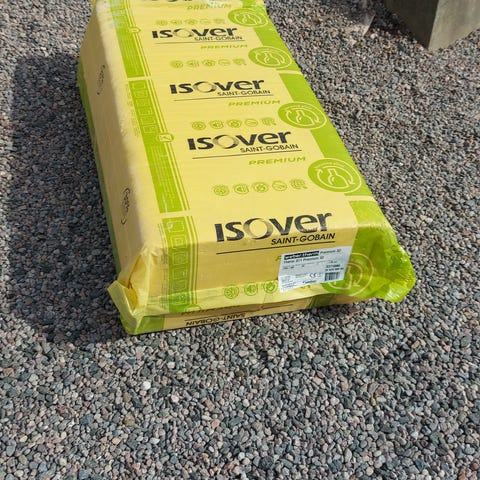 Isover MR 120/20 Gyproc isolering i rulle. Mineralullsisolering lämplig för användning i väggar, tak eller andra byggnadskonstruktioner där värme- och ljudisolering behövs. Levereras i originalförpackning i gula plastomslag med produktbeteckning och artikelnummer 3586518350 angivet på etiketten.