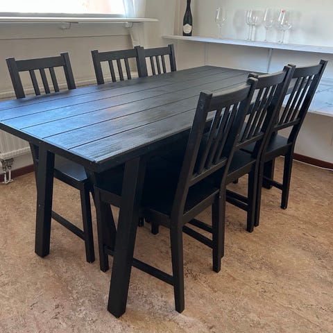 Bortskänkes då en av de större stolarna börjar ge upp. Setet skulle absolut behöva slipas och oljas.