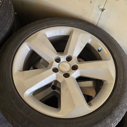 Fälgar i gott skick, däcken slitna. Suttit på en Audi A6 årsmodell 2018.
