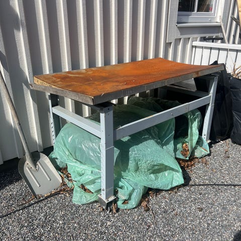 Använts som utekök och sedan planteringsbord.