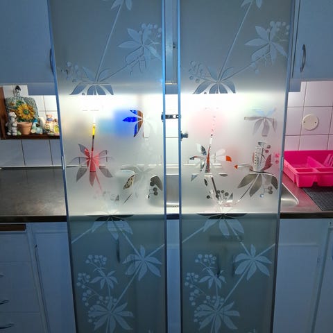 Ett par vitrindörrar med aluminiumram till Billy- hyllor, hög modell.