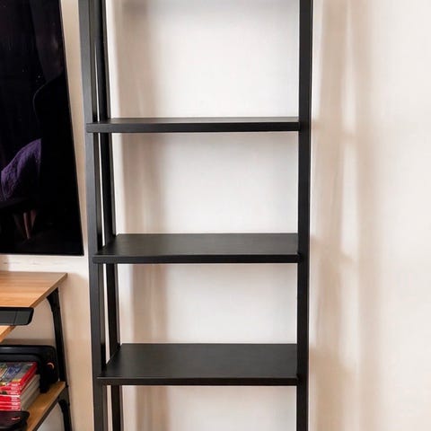 Säljer en steghylla i bra skick med modern industriell design. Perfekt som både förvaring och dekor i vardagsrum, sovrum, hall eller kontor. Hyllan ger ett stilrent uttryck och passar bra för växter, böcker och inredningsdetaljer.