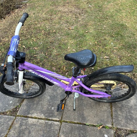 Scott barncykel med 16" hjul. Cykeln har orange ram med svart sadel och styre. Utrustad med skärmar fram och bak samt reflexer i hjulen. Passar mindre barn som behöver en stabil cykel för vardagscykling och lek.