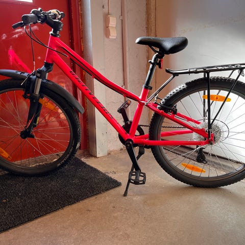 Mtb 24 tum. Märke White, 8 växlar, i bra men använt skick! Allt fungerande. Reflexer och stänkskärmar ingår men är enkla att ta bort.