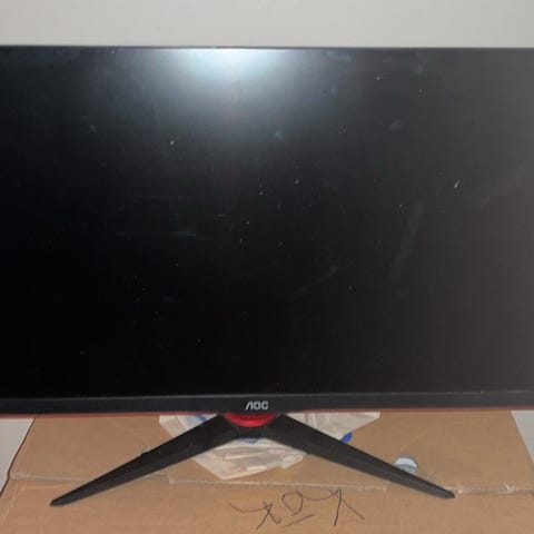 Datorskärm med skärmstorlek på 27 tum. Passar för användning till dator, exempelvis för arbete, studier eller allmänt bruk. Skärmen står på ett stativ med tre ben och ansluts med strömkabel och bildkabel (typ av anslutningar framgår inte av underlaget). Färg och övriga specifikationer är inte angivna.