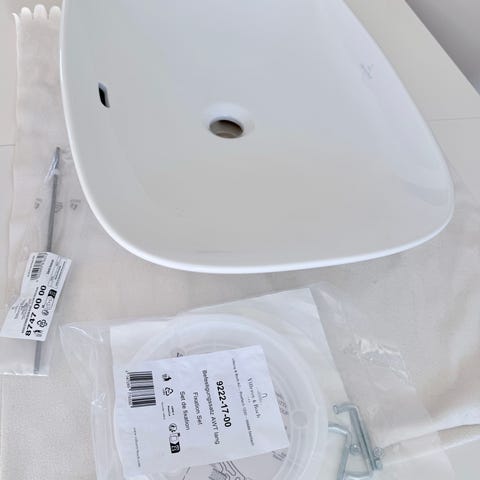 Jungborn tvättställ i vitt porslin. Ej monterat. Rektangulär form med integrerad handfatsdel och avställningsyta. Utrustad med bräddavlopp och hål för blandare samt avlopp. Passar för montering på kommod eller bänkskiva i badrum.