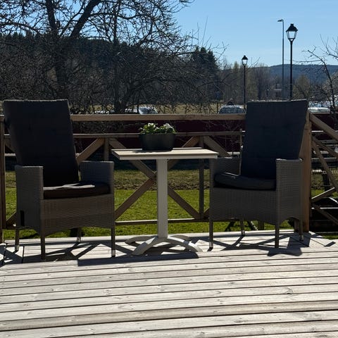 Säljer ett mysigt litet set med utemöbler bestående av två stolar och ett bord. Perfekt för balkong eller mindre uteplats.