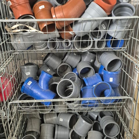 Gråa rörböjar i plast