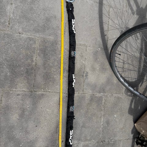 Abus kättinglås med hänglås i metall. Kättingen är klädd i svart skyddshölje för att minska risken för repor på det som låses fast. Passar för låsning av till exempel cykel, moped eller annan utrustning där en kraftigare kätting önskas. Hänglås medföljer.