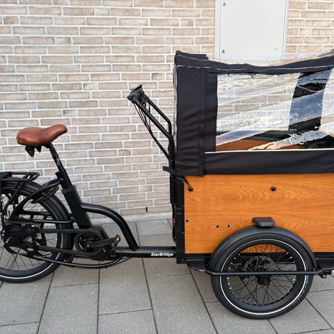 Säljer vår lådcykel Babboe Big E med plats upp till 4 barn och som vi har varit så nöjda med.